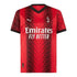 The AC Milan Home Jersey 2023/24 is a celebration of the club's iconic red and black stripes, with a modern twist. The stripes are transformed into a completely new repeat graphic that celebrates the city, the team, and their role at the heart of a community that's constantly evolving, constantly moving things on. The jersey also features yellow details on the collar and cuffs, adding a pop of color. The AC Milan crest is embroidered on the left chest of the jersey, and the Puma logo is embroidered on the right chest. The jersey also has a sponsor logo on the front and a player name and number on the back. The AC Milan Home Jersey 2023/24 is made from a lightweight, breathable fabric that is designed to keep players cool and comfortable on the pitch. It also features dryCELL technology, which helps to wick away sweat and keep players dry. Overall, the AC Milan Home Jersey 2023/24 is a stylish and functional jersey that is perfect for both players and fans alike. It is a must-have for any AC Milan supporter.