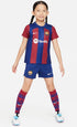 Inspired by the rich history and tradition of FC Barcelona, the Kids FCB Barcelona 2024 Jersey with Shorts features the club's distinctive colors and crest, ensuring your child looks and feels like a true Barça champion on and off the pitch.