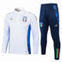 The Italy 24-25 White Half-Zip Tracksuit is a sleek and modern representation of the Italian national football team, perfect for fans and athletes alike. Featuring a crisp white design accented with the iconic blue and green colors of the Azzurri, this tracksuit prominently displays the national crest, allowing supporters to showcase their pride in style. Its sophisticated look makes it suitable for both training sessions and casual outings, ensuring you make a statement wherever you go.